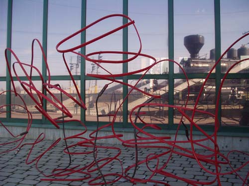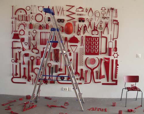 Konepaja, installaatio VR:n konepajojen vanhoista työkaluista, rakenteilla.