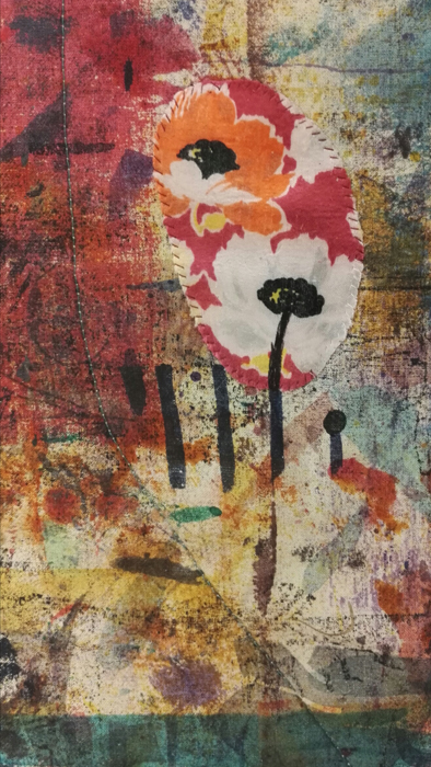 Tilkku Alma-mummon aamutakista painopohjalla, 2018.