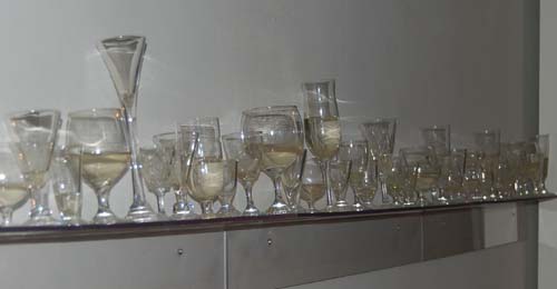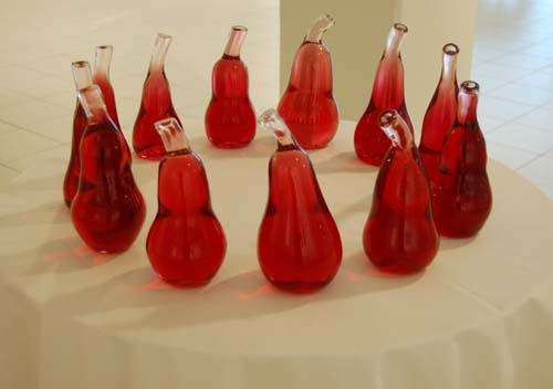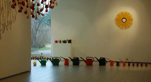 Yleiskuva. Ylhäällä vasemmalla Verta, hikeä ja kyyneleitä, 2005-. Keskellä Virtaa, 2004-. Tuonen virta (osa), 2007. Tekokukat. Kiertokulku, 2007. Lasi, mehu, pöytä.